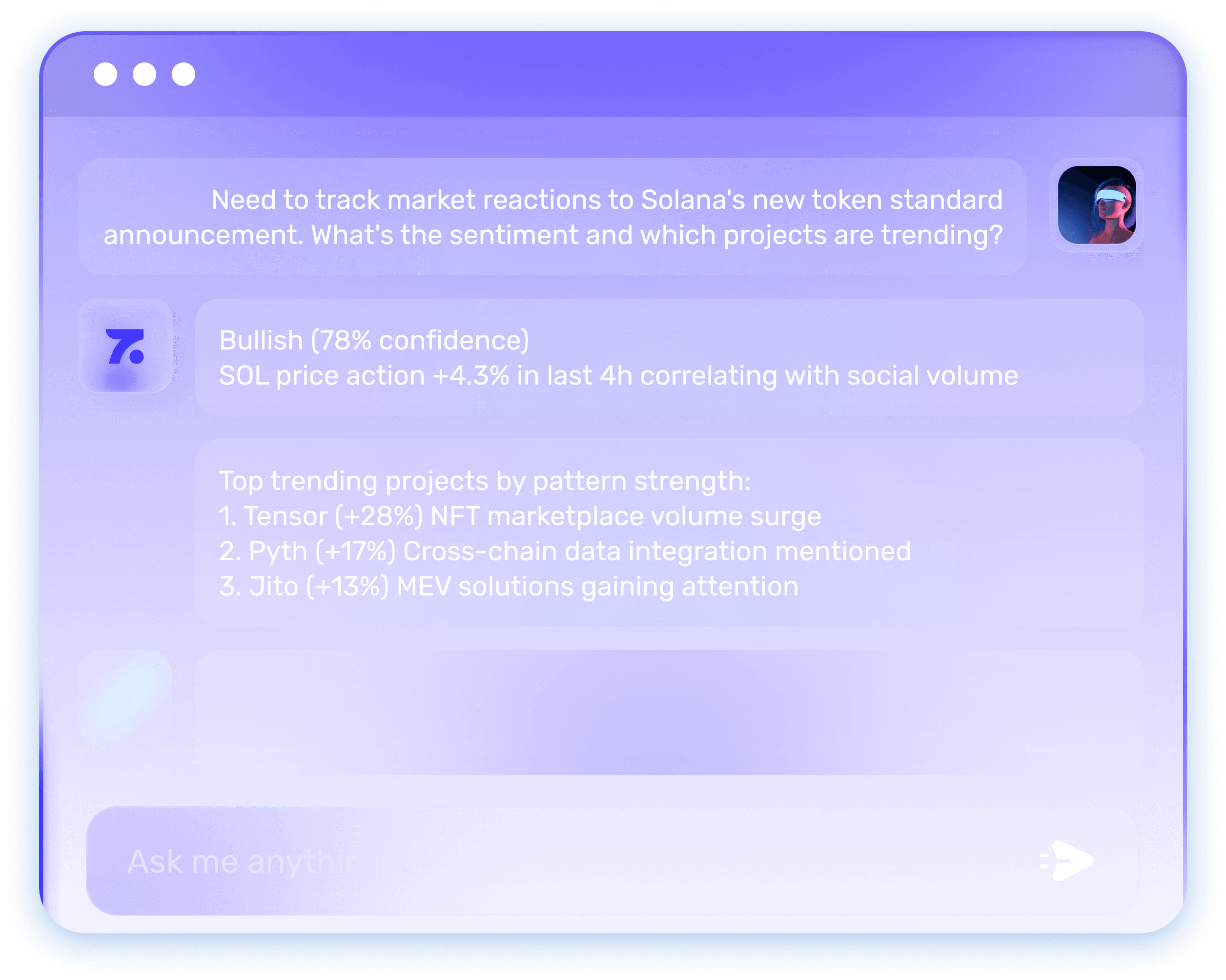 Integrate our Al agents into trading terminals to provide real-time market intelligence and actionable signals.